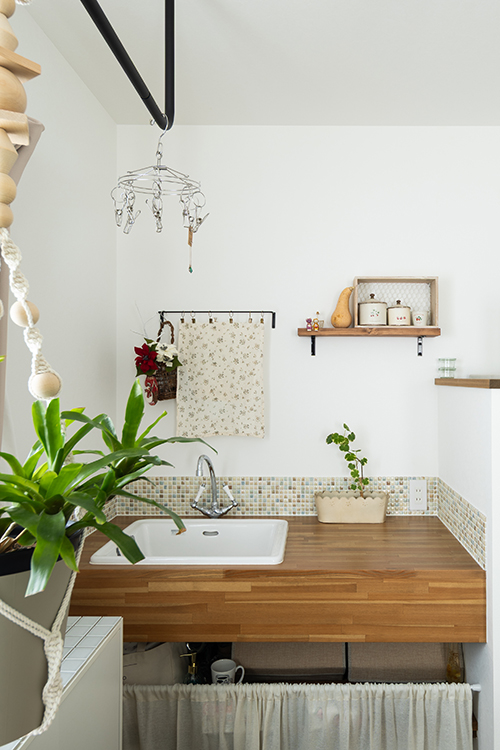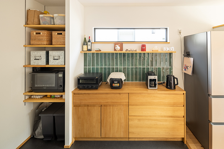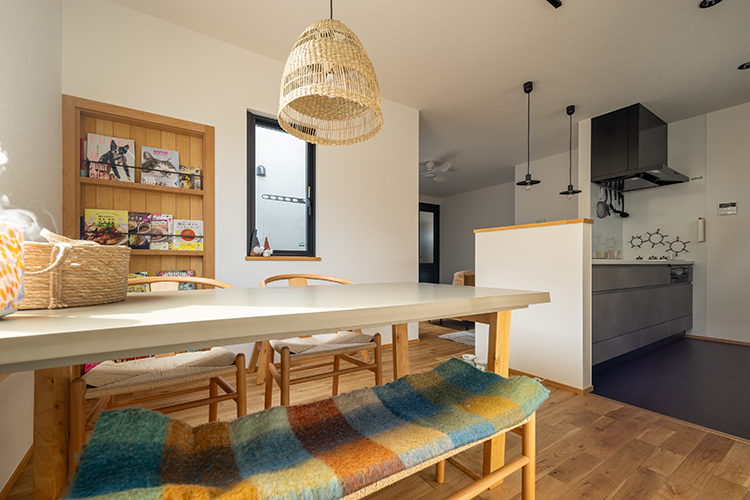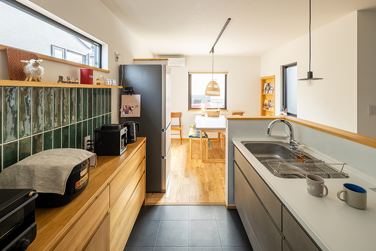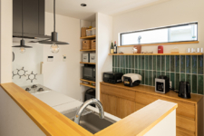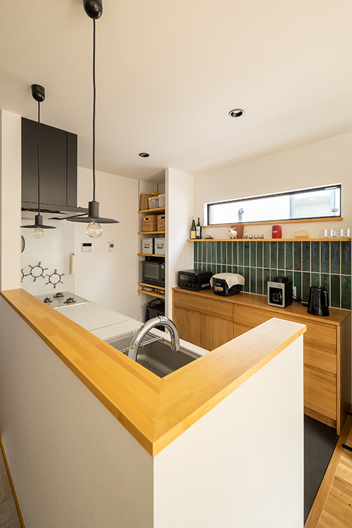 奥さまの夢だった対面キッチン+幅広造作カウンターは