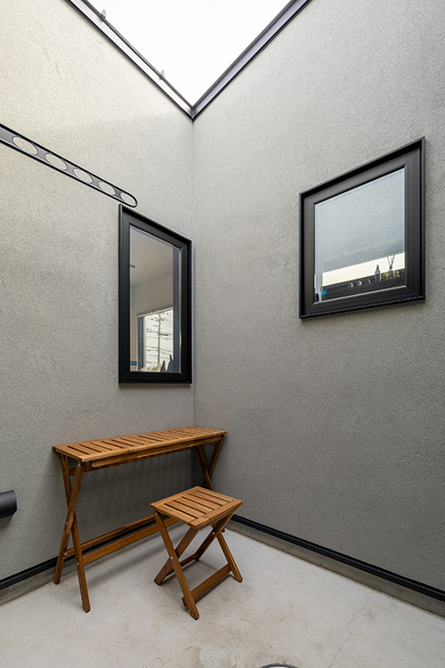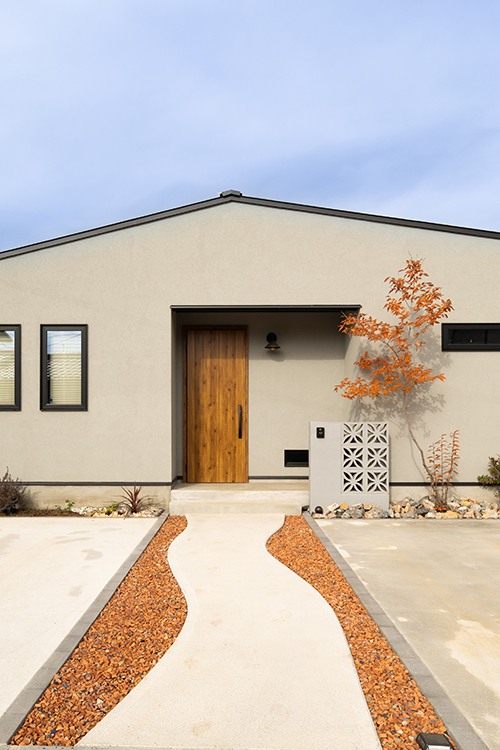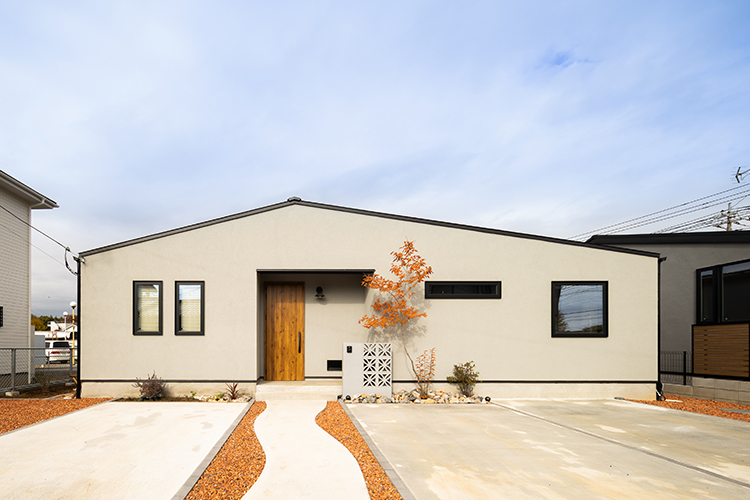 シンプルな外観に、アレンジした屋根デザインでほのかにジャパンディな雰囲気をプラス。
